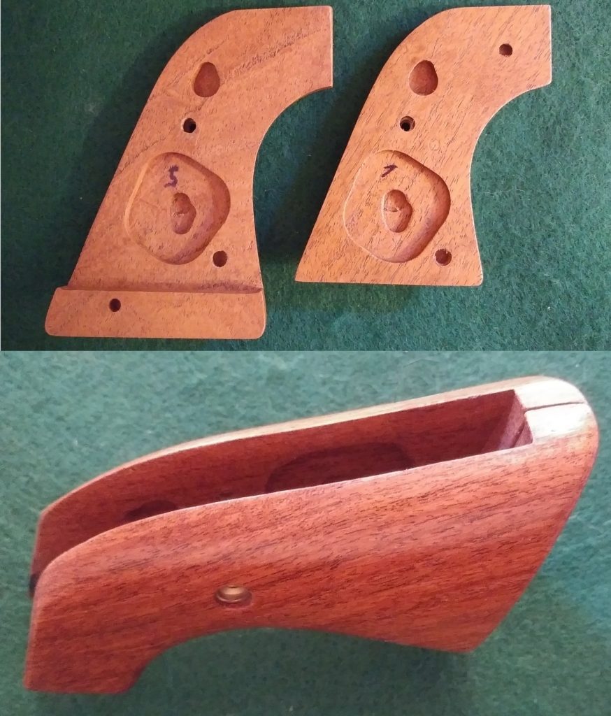 Texas Grips produces extended grips for many of the western style revolvers. We have them for many of the Ruger and Cimarron / Uberti old west style pistols. These grips are 1/2″ longer and wrap around the bottom of the frame, adding more grip area for shooters with larger hands and for shooting larger calibers. They give a whole new feel to these pistols. These grips will fit Ruger Blackhawks, Super Blackhawk Short Barrel (4.6″ and 5.5″), Old Army, Vaqueros, and Single Six models in both the XR3 and the XR3 Red grip frames . They fit the grip frames with or without the internal locking mechanism. We also have a limited supply of extended grips for the Cimarron / Uberti Model P SAA and the 1875 Army / Outlaw. Our grips are available in a variety of natural and laminated woods and are hand-finished with multiple coats of catalyzed lacquer.