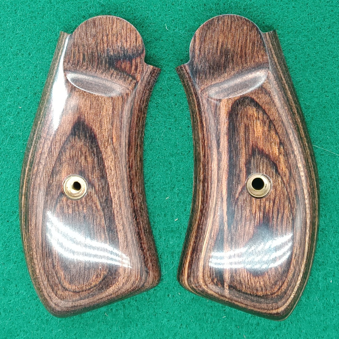 These grips are available in a variety of natural and laminate woods that are hand finished with a catalyzed lacquer. Custom woods are available if you wish to contact us.